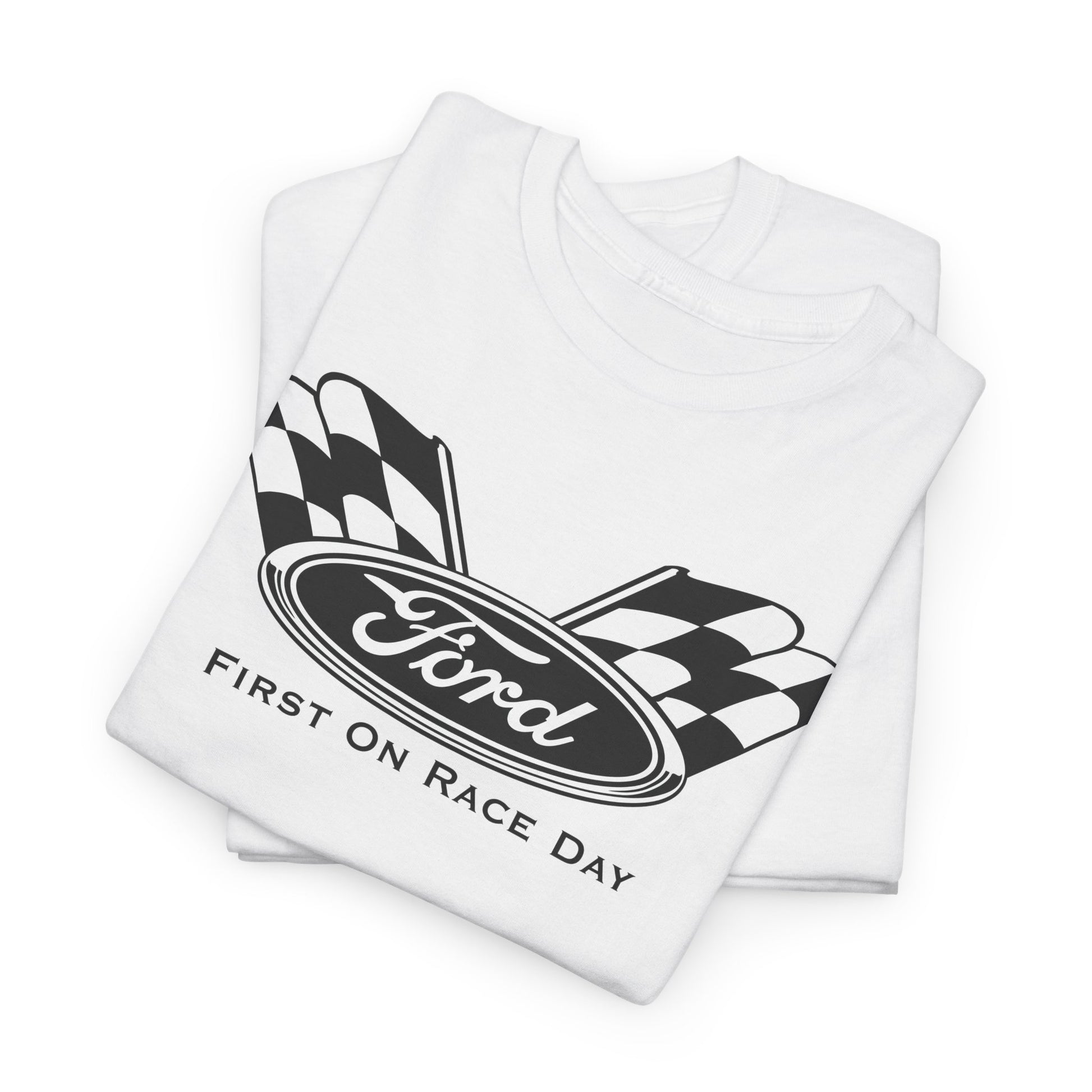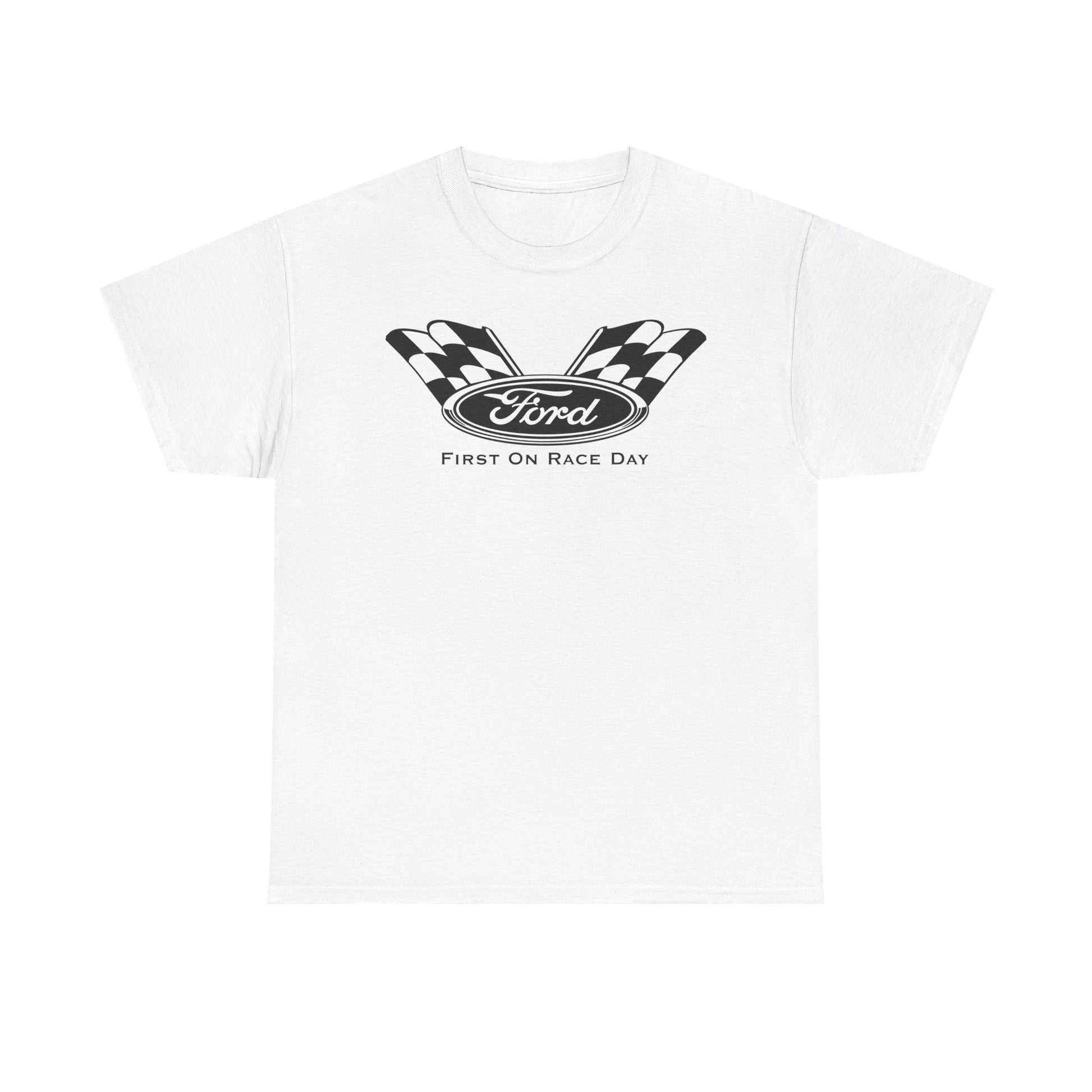 Ford Motor Company First On Race Day White Heavy Cotton Unisex T-Shirt
